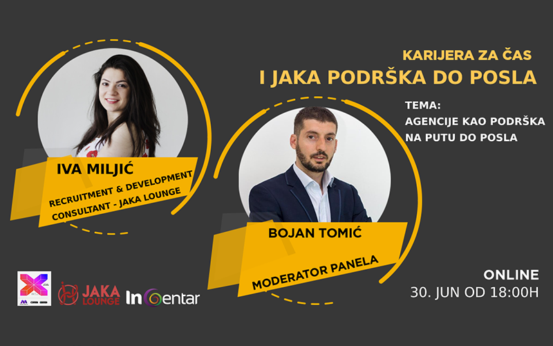 Gost četvrte sesije panela biće Iva Miljić, konsultant za razvoj karijere agencije Jaka Lounge. U praksi se vrlo često dešava da postoji nepoverenje kada su agencije za zapošljavanje u pitanju. Upravo zato se bavimo ovom temom sa namerom da damo što preciznije odgovore zašto je posredovanje pri zapošljavanju korisno i na koje sve načine pomaže kandidatima. Pridružite nam se i pitajte sve što vas interesuje!